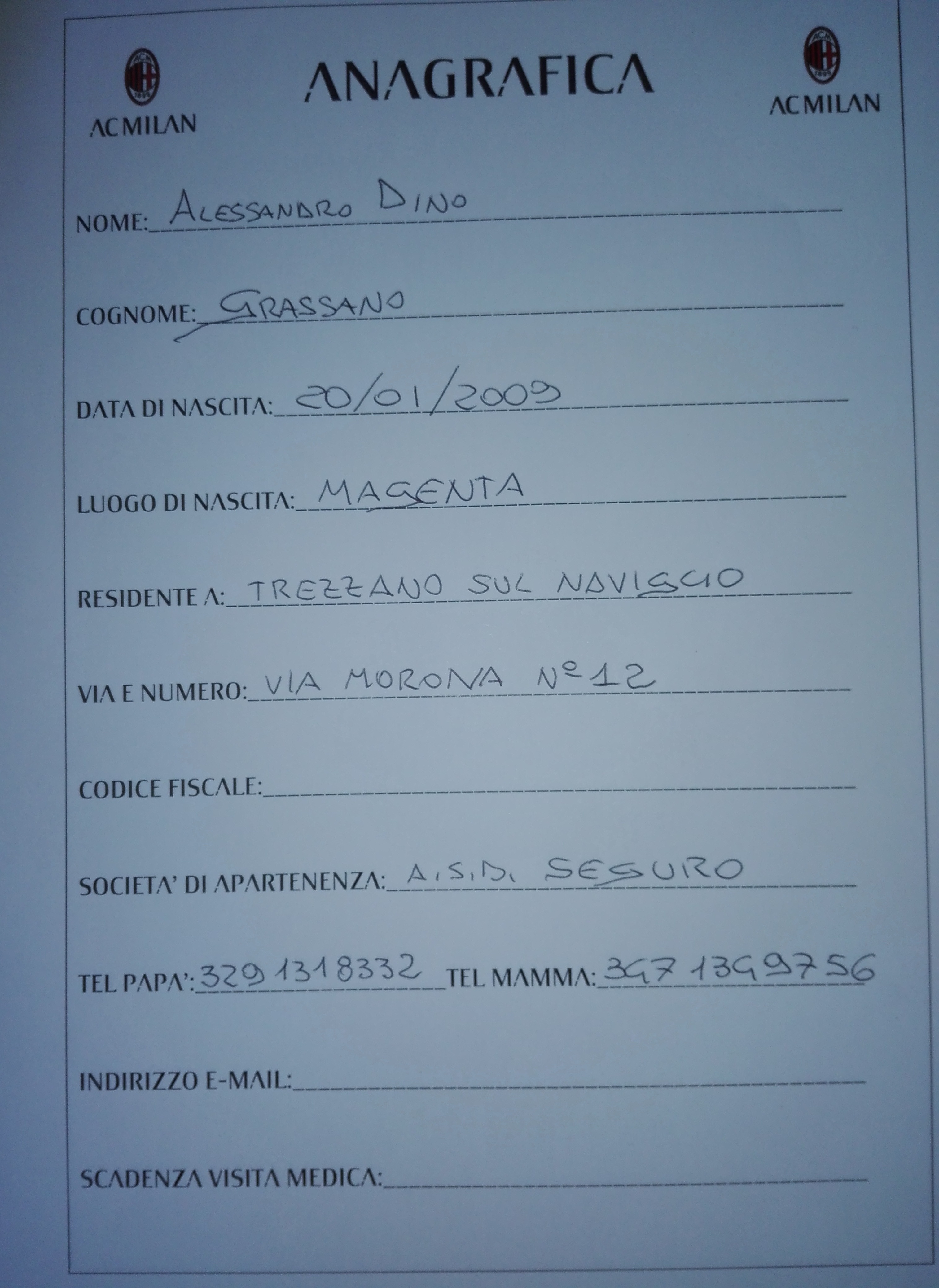 | Provino al centro "Vismara" (MI) per A.C. Milan |